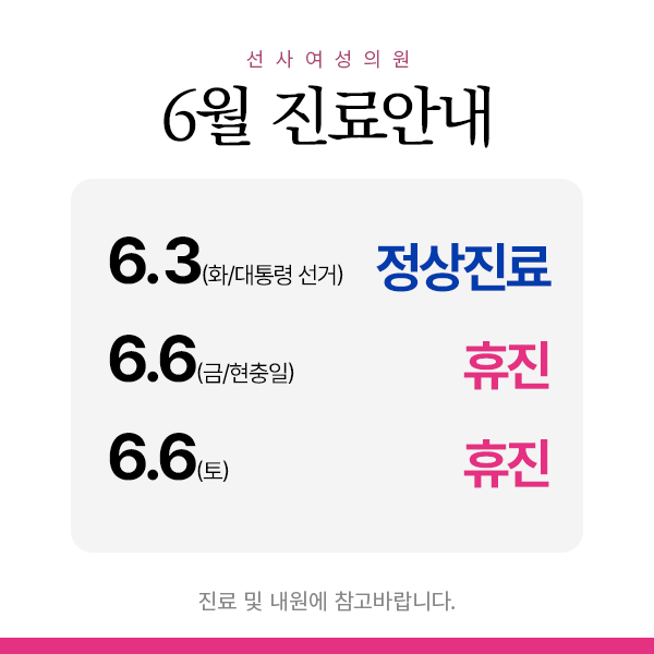6¿ù Áø·áÀÏÁ¤ ¾È³» ÀÔ´Ï´Ù.